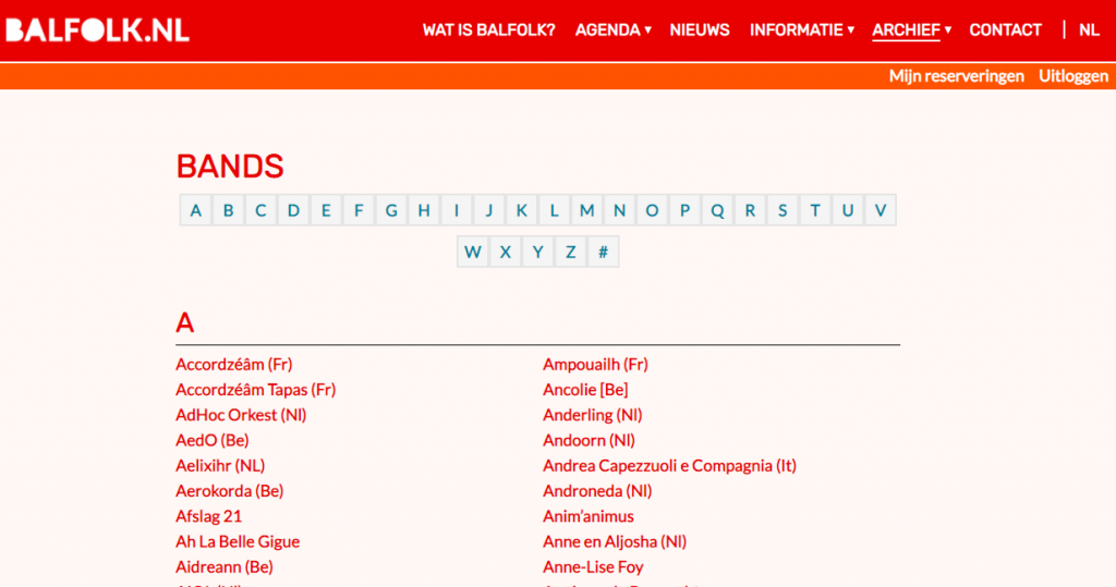 Op de vorige balfolk.nl site kon je een database vinden van alle bands die opgetreden hebben in Nederland. Veel mensen missen de band database zoals hij er vroeger was. Gelukkig is hij nu, in een nieuw jasje, te vinden in de archiefsectie! Mocht je je dus vervelen tijdens deze barre tijden dan kan je hier eens lekker door pluizen.